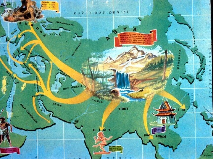 TÜRK GÖÇLERİNİN SONUÇLARI 1. Türkler medeniyetlerini gittikleri yerlere taşıdılar. (Atı evcilleştirme, demiri işleme) 2. Türklerin belli bir coğrafyada olmaması, Türk tarihinin incelenmesini zorlaştırmıştır. 3. Türk kültürü yayıldı. 4. Avrupa’ya giden Türkler, yerleşik kültüre sahip olan Slavlar arasında asimile (dejenere) olmuşlardır. 5. Hindistan’a gidenler savaşçılık özelliğini kaybetmişlerdir.