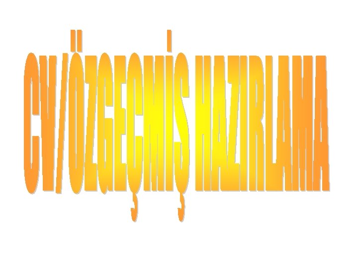 CV/ÖZGEÇMİŞ • CV/ÖZGEÇMİŞ NEDİR? • CV/Özgeçmiş; • İstihdam deneyiminizin, eğitim ve kişisel geçmişinizin bir envanteridir. Belli bir iş türü için bir işverene ne sunmanız gerektiğini söyler. Veya belli bir işveren yoksa eğer, niteliklerinizi çeşitli görüşlere sunmada hizmet eder.