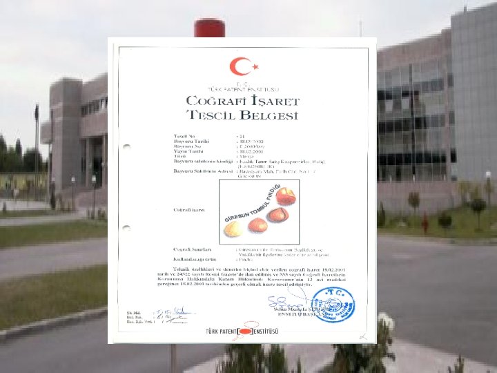 Tescil Prosedürü • Başvuru formu • İnceleme (eksiklikleri giderme) Ezine peyniri • Uzman kuruluştan görüş istenmesi (gerekli görülürse) • Gerekli şartları taşıyan başvuruların yayımlanması • 6 aylık itiraz süreci • İtiraz olmadığı takdirde, tescil İzmit Pişmaniyesi Gemlik zeytini
