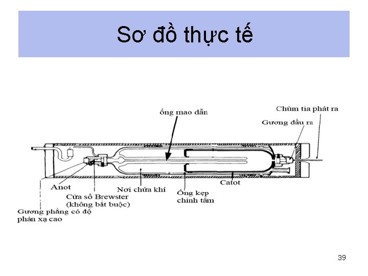 Thông số sử dụng • • • Áp suất trong lòng: xấp xỉ 3, 4 đến 4 Torr. Hiệu điện thế 2 đầu: 220 V - 10 k. V gây ra dòng điện khoảng vài m. A. Nhiệt độ trong lúc hoạt động: -25 đến 800 C. Công suất tiêu thụ: 20 m. W để sinh ra 1 m. W laser. Nồng độ He-Ne: từ 5: 1 đến 20: 1 40