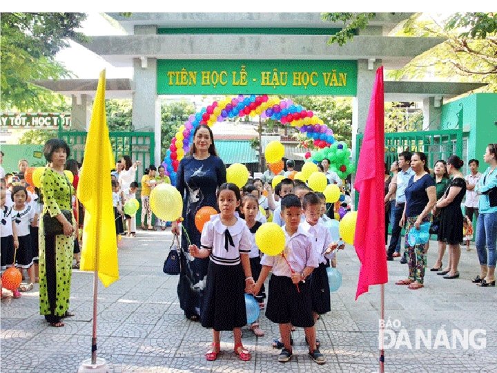 Trường trang hoàng lộng lẫy Bạn đông ơi là đông Cô dắt bé vào lớp Trong niềm vui phập phồng
