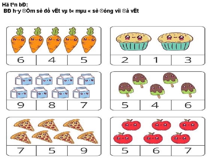 Họ tên trẻ: Bé hãy đếm số đồ vật và gạch chéo ô số không đúng với nhóm đồ dùng bên cạnh nhé