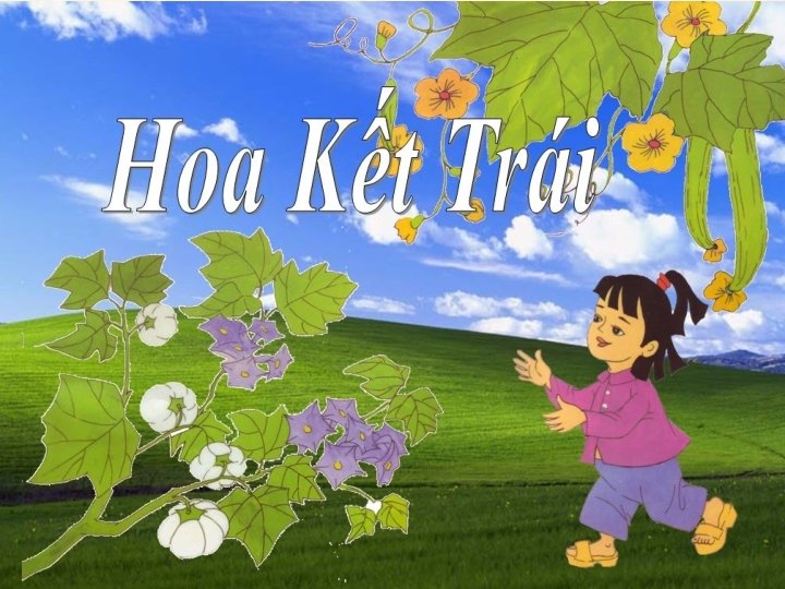 Hoa kết trái Hoa cà tim tím Hoa mướp vàng Hoa lựu chói chang Đỏ như đốm lửa Hoa vừng nho nhỏ Hoa đỗ xinh Hoa mận trắng tinh Rung rinh trong gió Này các bạn nhỏ Đừng hái hoa tươi Hoa yêu mọi người Nên hoa kết trái