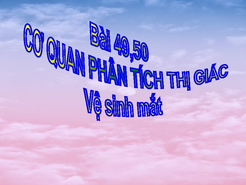 I. Cơ quan phân tích II. Cơ quan phân tích thị giác Tế bào thụ cảm thị giác Cơ quan thụ cảm Dây thần kinh thị giác Dây số II Dây thần kinh (Dẫn truyền hướng tâm) Vùng thị giác ở thùy chẩm Bộ phận phân tích ở trung ương