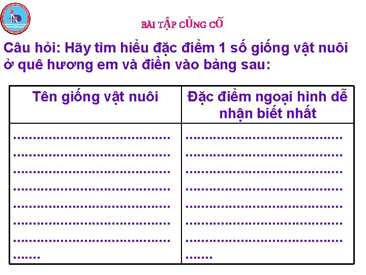 Giống vật nuôi Năng suất chăn nuôi Năng suất trứng (quả/năm/con) Gà Lơ go Gà Ri Bò Hà Lan Bò Sin Năng suất sữa (kg/chu kì ngày tiết sữa/con) 250 – 270 70 – 90 5500 -6000 1400 -2100