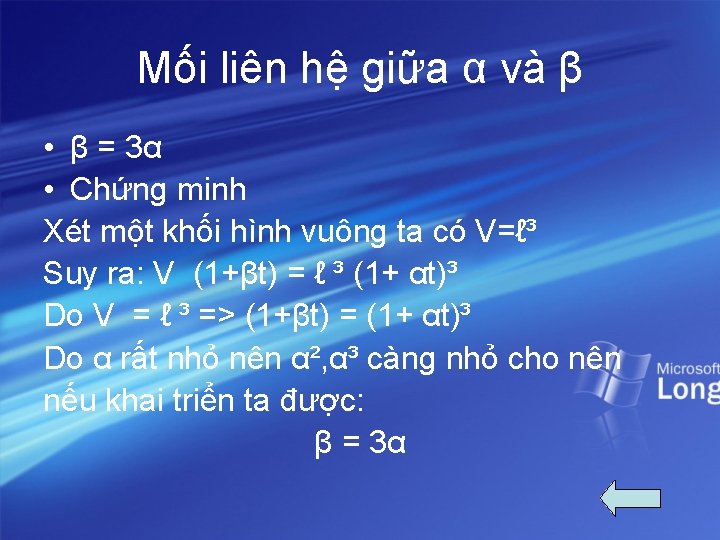 Bài 36: Sự nở vì nhiệt của vật rắn I. II. - Sự nở dài Sự nở khối: sự tăng thể tích của vật rắn khi nhiệt độ tăng Độ nở khối: ΔV=V – Vo=βVoΔt β : là hệ số nở khối phụ thuộc chất liệu của vật rắn đơn vị 1/K hay K-1 β≈3α