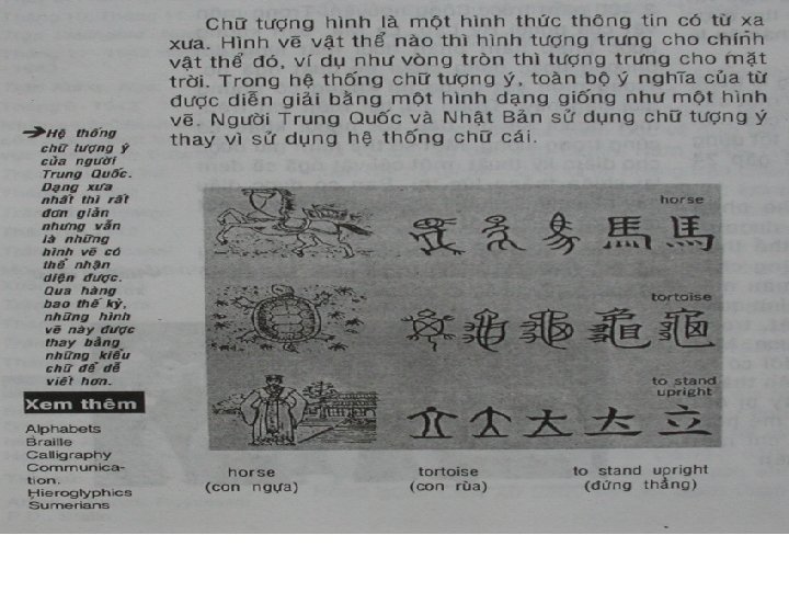 +Chöõ vieát : -Khoaûng thieân nieân kæ thöù IV TCN chöõ vieát laàn ñaàu tieân xuaát hieän ôû Löôõng Haø vaø Ai Caäp. Ban ñaàu laø chöõ töôïng hình, sau phaùt trieån thaønh chöõ töôïng yù.
