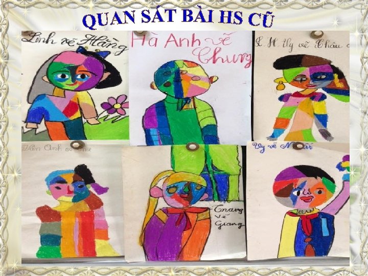 C U HỎI GỢI Ý ? • Em vẽ bức tranh chân dung bạn như thế nào? • Em có cảm nhận như thế nào khi trải nghiệm cách vẽ không nhìn giấy? • Hình vẽ của em có quá nhỏ hoặc quá to so với tờ giấy không? Em làm gì để hình cân đối với tờ giấy?