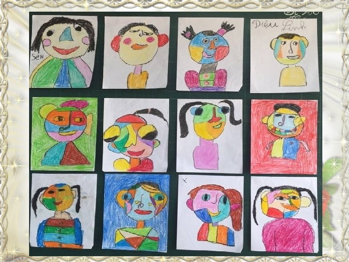 GỢI Ý HS ĐẶT C U HỎI CÙNG CHIA SẺ • • • Cảm nhận của em khi tham gia hoạt động vẽ tranh biểu cảm? Nhân vật của em như thế nào? Tính cách của nhân vật của em như thế nào? Vì sao em sử dụng màu săc đó? Em thích bài nào nhất ? Vì sao? Qua bài học ngày hôm nay, em muốn chia sẻ điều gì ? Với thày cô và các bạn?
