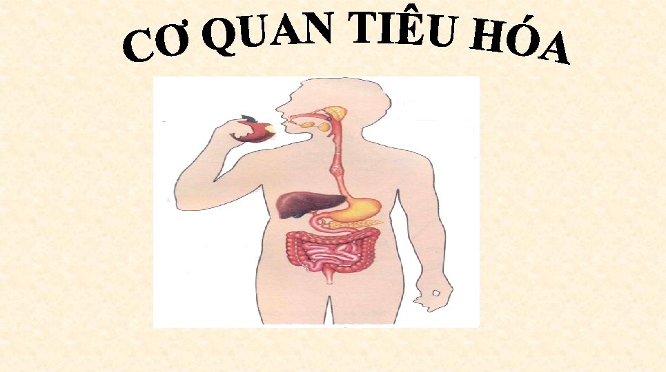 1) Chỉ vào hình vẽ và nói tên các cơ quan tiêu hóa? Miệng Tuyến nước bọt Thực quản Gan Dạ dày Túi mật Ruột non Ruột già Hậu môn Tụy
