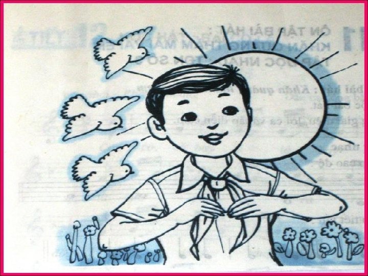 Hát kết hợp gõ theo nhịp Khi trông phương đông vừa hé ánh dương. x x xx Khăn quàng trên vai chúng em tới trường. x x xx Em yêu khăn em càng gắng học hành. x x xx Sao cho xứng cháu Bác Hồ Chí Minh x x ……