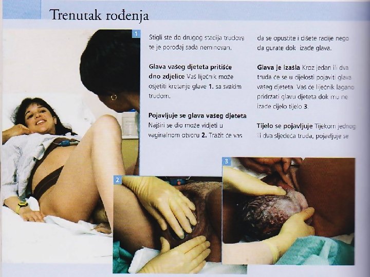Drugo tromjesečje � 14 -19 tjedan posteljica je u cijelosti formirana te preuzima ulogu proizvodnje hormona. Jutarnja mučnina nestaje. � od 18. do 19. tjedna madeži i pjege trudnice tamne, a tijekom 23. tjedna počinje akomulacija masnih naslaga oko prsa i bokova. Sve do 27. tjedna mišići dna zdjelice se rastežu, srce i bubrezi trudnice rade jače.