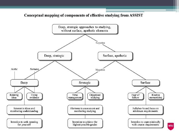 ASSIST (Approaches and Study Skills Inventory for Students) Identifies : • approaches to learning: ▫ surface ▫ deep ▫ strategic • preferred teaching and learning methods: ▫ surface (transmitting information) ▫ deep (promoting understanding)