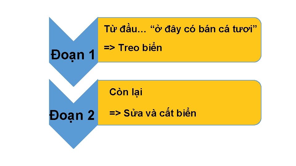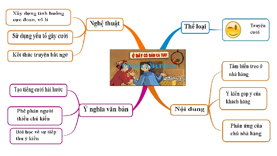 Ở Đ Y CÓ BÁN CÁ TƯƠI Người góp ý 1. Người qua đường Nội dung lời góp ý Ý kiến của nhà hàng Bỏ chữ “tươi” Bỏ ngay chữ “tươi” 2. Khách Bỏ chữ “ở đây” Bỏ ngay chữ “ở đây” mua cá 3. Khách Bỏ chữ “có bán” Bỏ ngay chữ“cóbán” mua cá 4. Người láng Cất nốt cái biển Bỏ chữ “cá” giềng