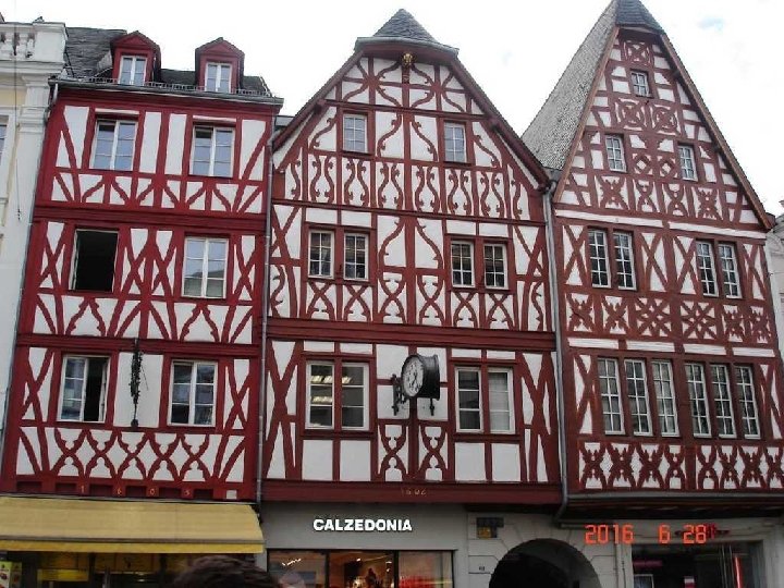 Trier – La Steipe et la Maison Rouge La Maison Rouge ANTE ROMAM TREVERIS STETIT ANNIS MILLE TRESCENTIS PERSTET ET AETERNA PAGE FRUATUR (Trèves s’éleva en l’an 1300 avant Rome, qu’elle perdure et qu’elle connaisse une paix éternelle) La maison du maître de la guilde des boulangers et secrétaire de la cathédrale Johann Wilhelm Polch est appelée la Maison Rouge et fut construite par Wolfgang Struppeler. L'épigraphe le plus important prétend que Trier (Trèves) serait plus ancienne que Rome de 1300 ans. Un autre fait référence à St Antonius, le patron protecteur de la maison. La sculpture est issue de l'atelier d'un sculpteur très connu à la fin du 17 e siècle à Trier (Trèves).