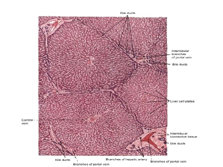 Krevní oběh v játrech v. portae a. hepatica interlobulární vény + arterie circumlobulární venuly + arterioly jaterní sinusoidy vena centralis sublobulární vény vv. hepaticae