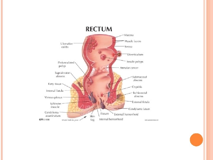 ESOVITÁ KLIČKA(colon sigmoideum) Dlouhý asi 30 cm, název odovozen podle esovitého průběhu, v malé pánvi přechází v konečník KONEČNÍK(rectum) Dlouhý asi 15 cm, leží ve vyhloubení kosti křížové 2 části: horní pánevní a dolní řitní Horní část se rozšiřuje v baňatou ampuli ve které se shromažďují výkaly Dolní část přechází v útvar zvaný řiť, řitní otvor je opatřen příčně pruhovaným svalem(m. sphincter ani externus), tlak stolice na nerv zakonč. ve stěne vyvolává defekační proces