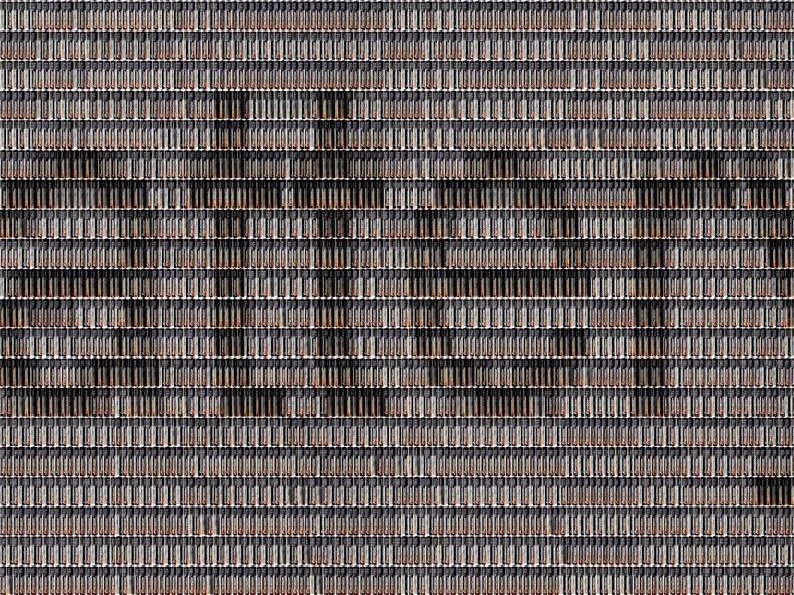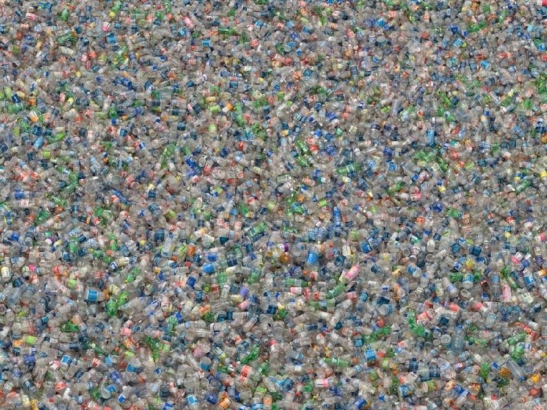 This is WASTE ART. These pictures are part of the exhibit "Running the Numbers, an American Self Portait", of photographer Chris Jordan, highlighting the millions of objects that accumulate in the planet, well beyond our sight. The numbers mentioned were obtained from the quantities of waste discarded only in the United States. Imagine what world figures are!