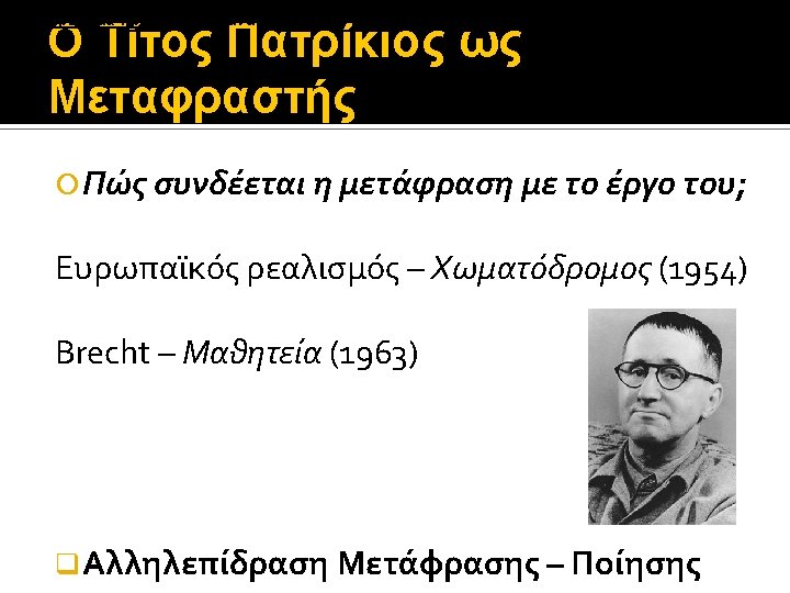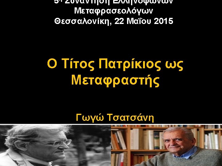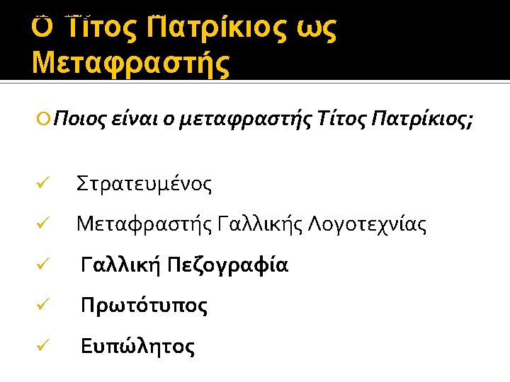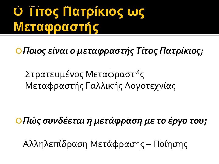 Ο Τίτος Πατρίκιος ως Μεταφραστής Charles Baudelaire Qu’est-ce qu’un poète, si ce n’est un traducteur, un déchiffreur?