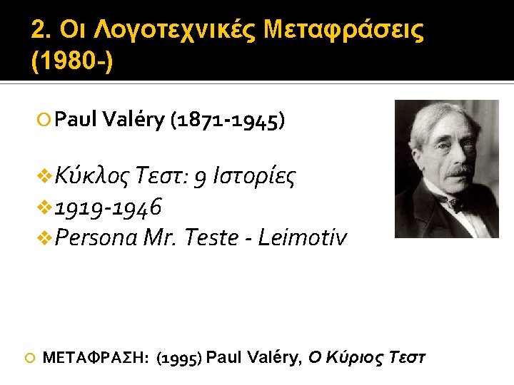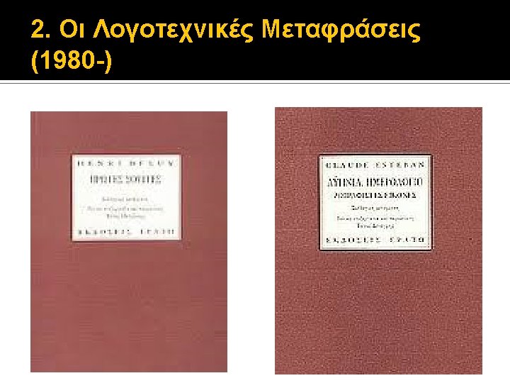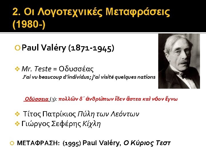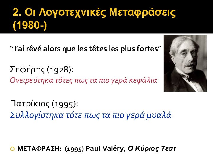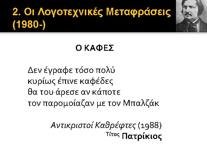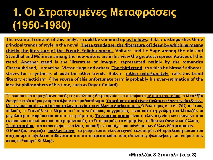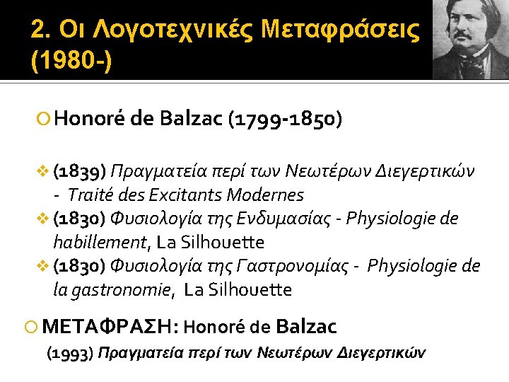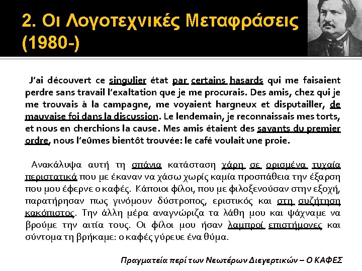 2. Οι Λογοτεχνικές Μεταφράσεις (1980 -) Stendhal (1783 -1842), nom de plume του Henri Beyle (1892) Souvenirs d’ Égotisme – 1832 (1890) La Vie de Henry Brulard – 1835 -36 ΜΕΤΑΦΡΑΣΗ: Stendhal (1983) Αναμνήσεις Εγωτισμού (? ) Η ζωή του Henry Brulard