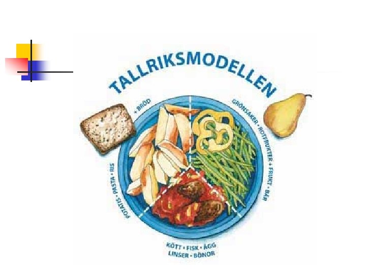 Meny 1. Frukost: 2 dl yoghurt/fil/mjölk, 2 mjuka 2. 3. 4. 5. 6. mackor med margarin och pålägg. Mellanmål: 1 frukt Lunch: En normalportion lagad mat Mellanmål: 1 frukt/bulle Middag: En normalportion lagad mat Kvällsmat: 2 dl yoghurt/fil/mjölk/juice 1 mjuk smörgås med pålägg