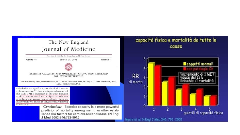 Rischio relativo di morte Soggetti sani 4, 5 5 4 2, 5 3 1, 8 2 1, 3 1 1 0 1 2 3 4 5 Capacità di esercizio Myers J. et al. New Engl J Med, 2002