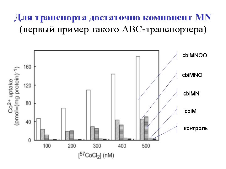 New ATP-dependent transporters + Cbi. N Cbi. M Ni 2+ Co 2+ Nik. M + Nik. N + Nik. L, Nik. K + Nik. L
