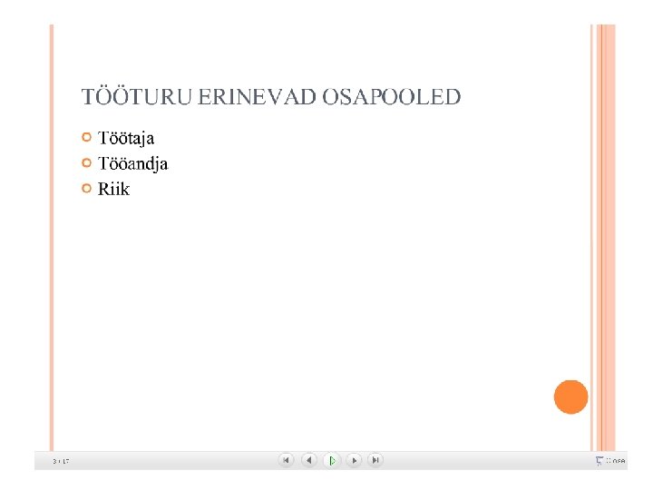 Tööturg • Tööturul kohtuvad tööjõu nõudlus ja tööjõu pakkumine ehk inimesed, kes müüvad oma tööd ja inimesed, kes ostavad ja maksavad selle eest tasu. • Tööturul kehtivad samad põhimõtted, mis turul. 1) Seal müüakse tööjõudu ja töökohti. 2) Tööturul palju pakkujaid ja tööotsijaid. Kujuneb konkurents.