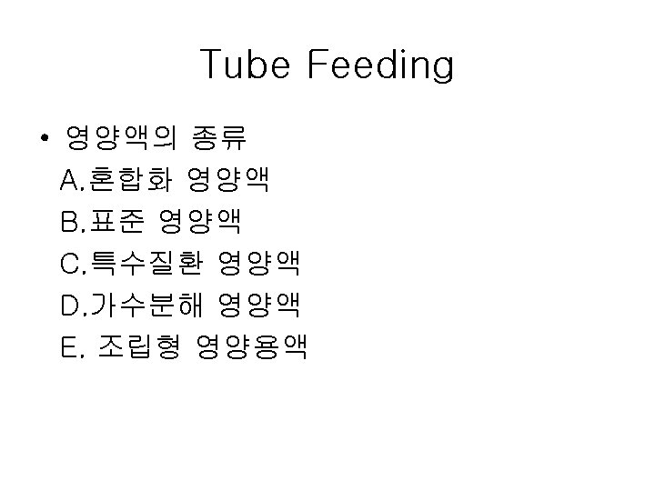 Tube Feeding (OE tube) • OE tube (Oro-Esophageal tube): aspiration pneumonia가 있는 경우 설사증상 있는 경우