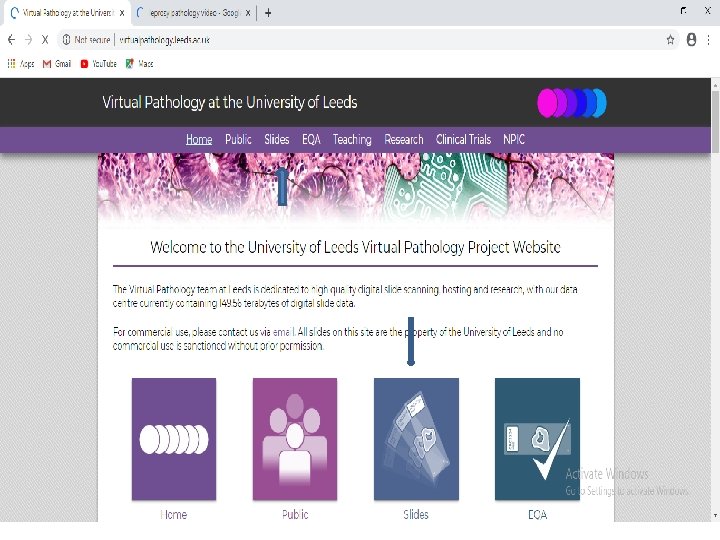 • There are other ways of viewing these slides with more advanced options such as the Aperio Imagescope but this is a software which has to be downloaded on the laptop or desktop and cannot be run on mobile. • The next few slides show stepwise how you can access the slides at leeds, UK. • Happy reading