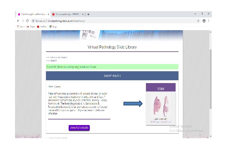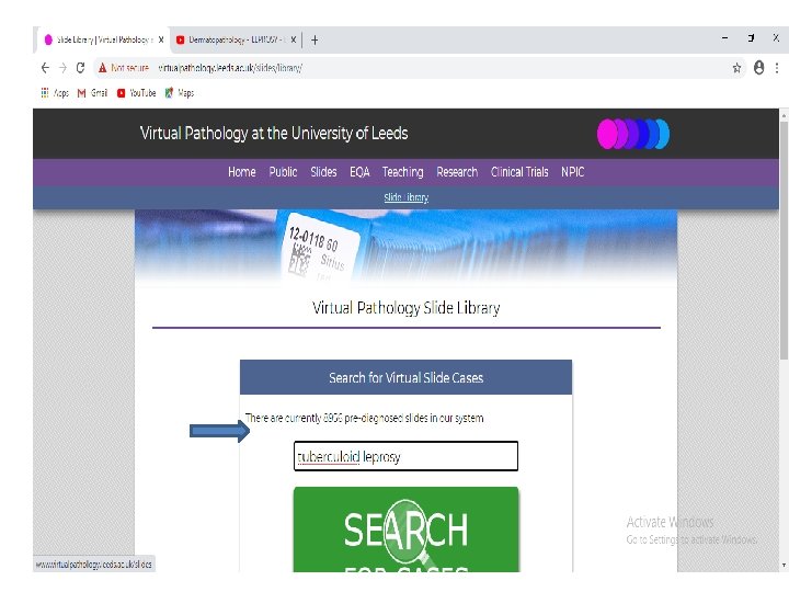 • Go to the website and click on the slide option from the top bar. • Click on the slide viewer icon • Type ‘ tuberculoid leprosy’, or ‘lepromatous leprosy ‘ and then click on the microphotograph image • You can focus on parts of the slide and zoom in or out using the options in the toolbar.