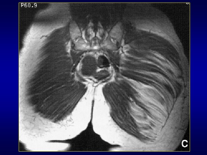 Myopathies inflammatoires • On distingue les polymyosites, les dermatomyosites, les myosites à inclusion • Atteinte inflammatoire dysimmunitaire des muscles striés • Diagnostic par clinique, CPK, EMG, biopsie d’un muscle proximal • Sémiologie IRM: inflammation, atrophie, infiltration graisseuse. Oriente biopsie