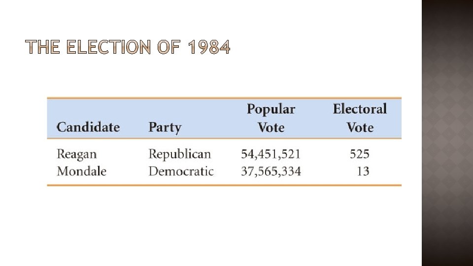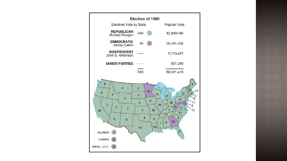� Carter’s troubles �High inflation and high unemployment �Hostage crisis and Soviet invasion of Afghanistan made Carter look naïve and helpless � Reagan: “Are you better off now than you were 4 years ago? ” � Reagan won in a landslide �Won all Southern states but Georgia �Made inroads into traditional New Deal groups �Republicans retook the Senate