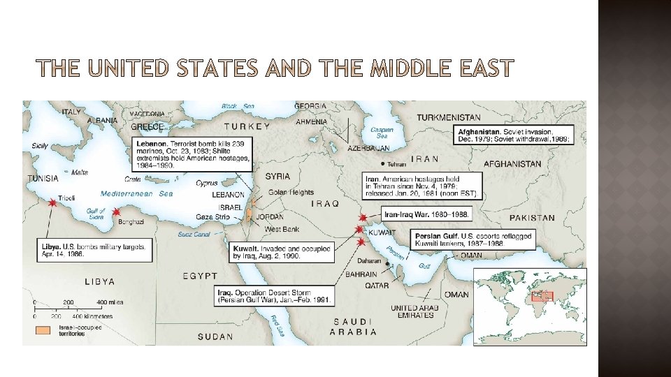 � 1982: With U. S. encouragement, Israel invaded Lebanon � International response �U. S. , France send troops to maintain order �PLO evacuated to Tunisia � 1984: 200 U. S. Marines killed in terrorist bombing � U. S. evacuation of Lebanon