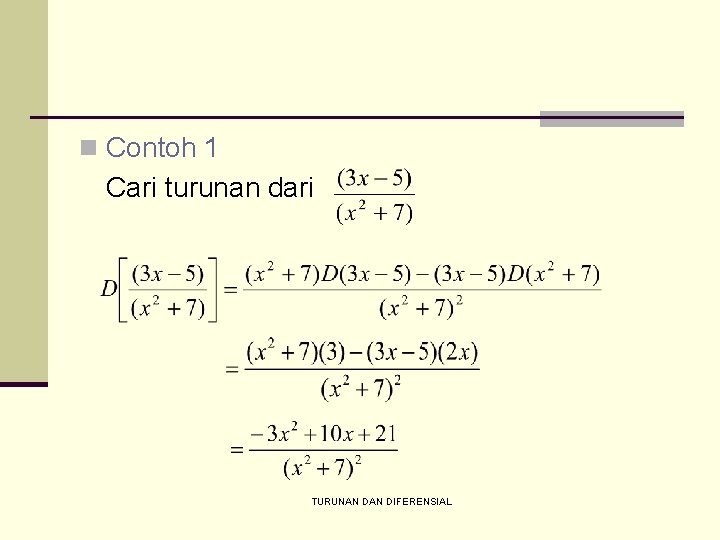 n Contoh 1 Cari turunan dari TURUNAN DIFERENSIAL