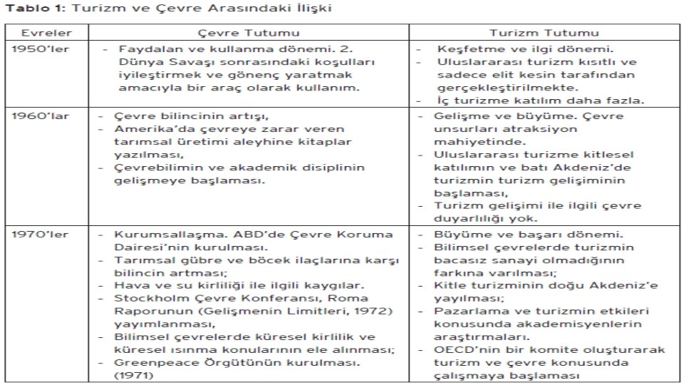 TURİZM VE ÇEVRE Turizm ve Çevre
