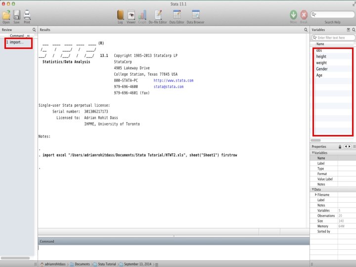 Importing Data into STATA (Microsoft Excel (. xls) Make sure “Import first row as variable names” is checked, then click ok