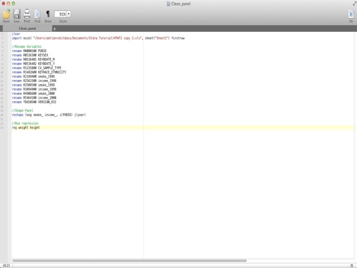 Working With Do-Files Motivation Why bother? 1) We can ovoid tediously running the same set of commands over and over again… 2) Creates a document listing all the commands we’ve run in plain text form 3) Increases our productivity with STATA!