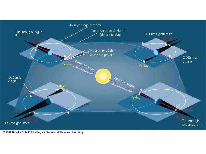 Tutulma koşulu Ay yörüngesi ekliptiğe göre ~ 50 eğimlidir. Bir güneş tutulması Ay, Yeniay evresinde düğüm yakınında ise oluşur. Bir ay tutulması Ay, dolunay evresinde düğüm yakınında ise oluşur.