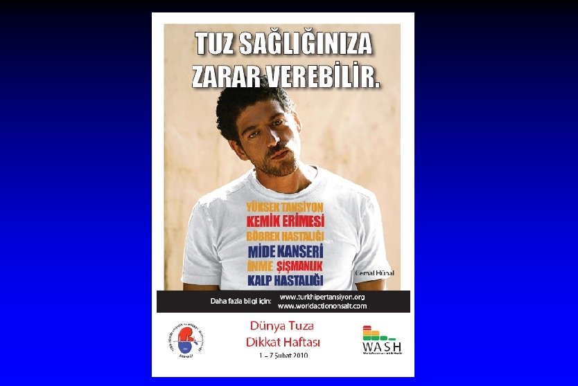 Dünya Tuza Dikkat Haftası 2009: Tuz ve dışarıda yemek 2010: Tuz ve Sağlığınız 2011: Tuz ve Erkek Sağlığı 2012: Tuz ve inmenin önlenmesi