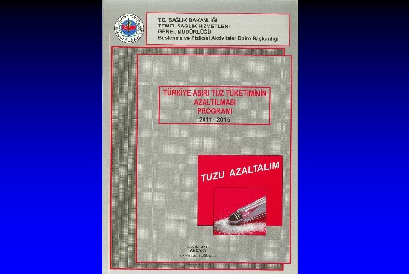 Tuzla ilgili çalışmalar 3 l ABD’de yapılan bir araştırma tuzun günde 3 gr azaltılması l Binlerce kardiyovasküler olayı önler ve yaşamları kurtarır l Sağlık harcamasını yılda 10 -24 milyar dolar azaltır