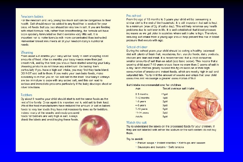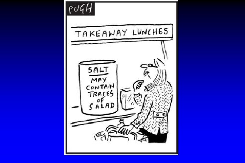 CASH çalışmaları (2007) l ‘Sağlıklı’ açık büfe salata ve makarna tabakları burger ve kızarmış patatesten daha fazla tuz içerebilir l Fast food, hazır yemek, çorba, sandviç l A Pizza Hut meal can contain four times a child's daily salt intake