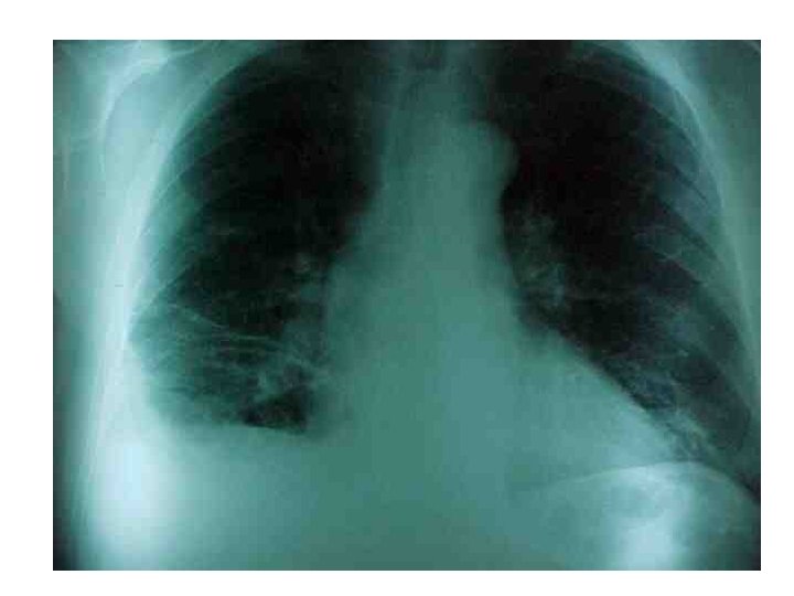 DIAGNOSTICO �EXAMENES COMPLEMENTARIOS Rx Tórax ▪ ▪ ▪ Agrandamiento cardíaco 36% Elevación hemidiafragma 26% Agrandamiento arteria pulmonar 25% Atelectasias 24% Infiltrados 23% Signo de Westmark: oligohemia focal marcada con hilio pulmonar prominente