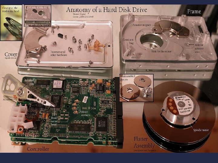 Građa diska n Svaki disk ima nekoliko glavnih cjelina. To su: n ploče (diskovi), n magnetske glave, n aktuator s nosačima glava, n pripadajući elektronički sklopovi (kontroler).