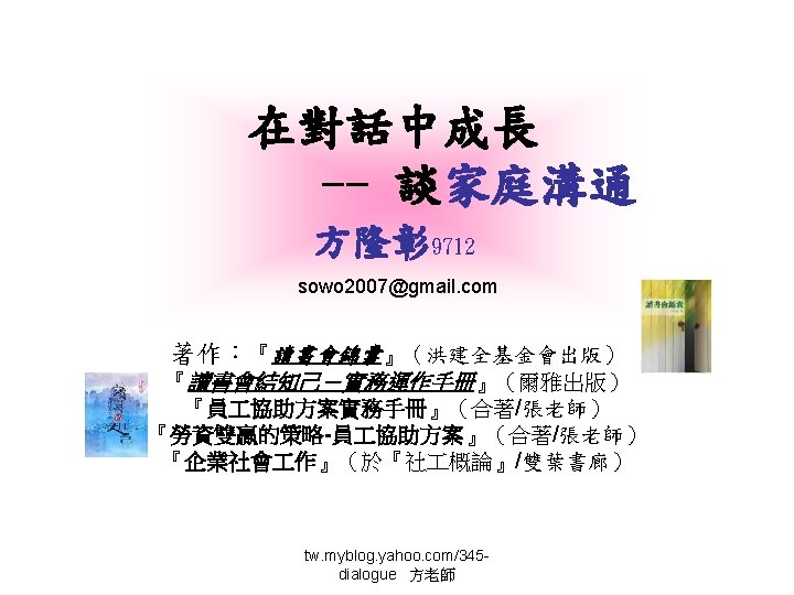 • 親密 • 情感 • 血緣 tw. myblog. yahoo. com/345 dialogue 方老師