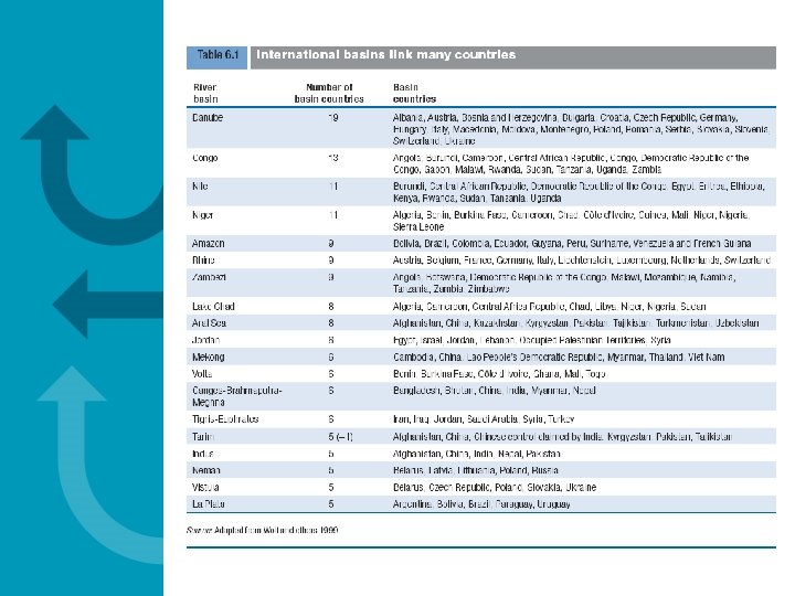 Why do transboundary waters matter for human development? • There are 263 international basins. • More than 40% of the world’s population live within transboundary basins. • The number of countries in shared basins is 145. • Sub Saharan Africa is the region that better demonstrates the realities of hydrological interdependence. • Azerbaijan, Croatia, Latvia, Slovakia, Ukraine and Uzbekistan receive between 50% to 75% of their water from outside their borders. • Hungary, Moldova, Montenegro, Serbia and Turkmenistan receive more than 75%. • Water for livelihoods.
