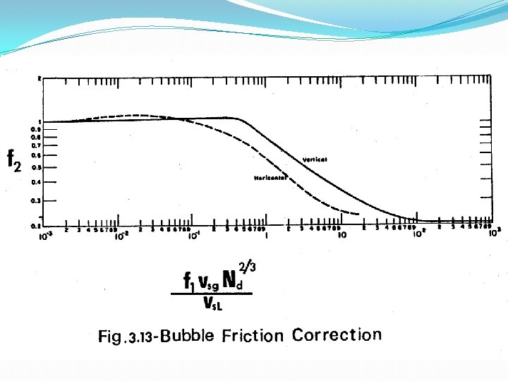 Two-Phase Flow Correlations Vertical Upward Flow Pipeline (Duns & Ros) 3 - Pressure gradient due to friction: Bubble Flow: f 1 is obtained from Moody diagram ( ), f 2 is a correction for the gas-liquid ratio, and is given in Figure 3 -13, and f 3 is an additional correction factor for both liquid viscosity and gas-liquid ratio, and can be calculated as: Slug Flow: The same as bubble flow regime.