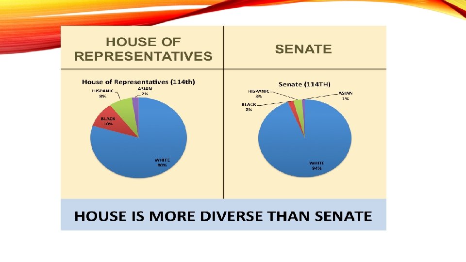 DEMOGRAPHICS 80% men, 20% women in both Houses House average = 56 Senate = 62