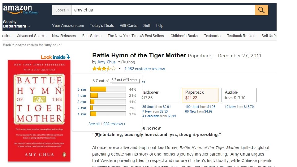 Jak jsem byla vychována… • Doma jsme museli mluvit čínsky, za každé anglické slovo, které nám proklouzlo jsem dostali jídelními hůlkami přes prsty. … Naše vysvědčení musela být perfektní. Přátelé odměňovali za dvojky, zatímco u nás doma se jedna mínus považovalo za nemyslitelnou známku. Když jsem byla v osmém ročníku, vyhrála jsem druhé místo v dějepisné soutěži a pozvala jsem na předávání cen i rodinu. Kiwanisovu cenu za nejlepšího žáka vyhrál jiný student. Otec mi pak řekl: Už mně takto nikdy nesmíš ponížit. • V naší zvláštní rodině jsem nacházela sílu a sebedůvěru. Všichni jsem začínali jako cizinci a spolu jsme objevovali Ameriku. • Když jsme se hlásili na univerzitu , tak otec řekl, že půjdeme studovat na Berkley. Když jsem mu řekla, že jsem se přihlásila na Harvard a že mě přijali, tak se přes noc vyzuřil a ráno se probudil jako hrdý otec.
