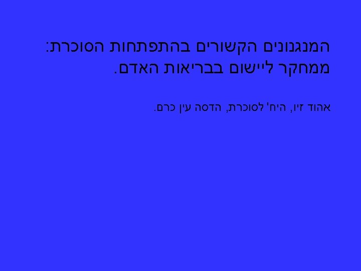 : שני סוגי הסוכרת הנפוצים ביותר Type 1 diabetes mellitus (IDDM - Insulin Dependent Diabetes Mellitus) (Juvenile diabetes) Type 2 diabetes mellitus (NIDDM - Non-Insulin Dependent Diabetes Mellitus) (Adult onset diabetes)
